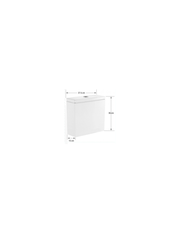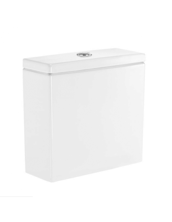 El depósito de apoyo Roca Inspira Blanco es una solución de porcelana sanitaria con doble descarga (4,5/3 litros) y diseño minimalista, compatible con inodoros de la misma línea.